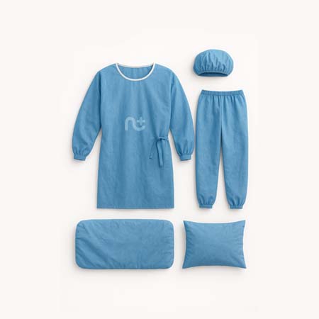 The Nalino MRI Set is made from high-quality 38-gsm woven fabric in sky blue color, specially designed for MRI departments. Its soft, lightweight, and hypoallergenic texture ensures patient comfort while maintaining strict hygiene and infection control standards. The durable material provides effective protection against fluids and contaminants, making it ideal for medical use.